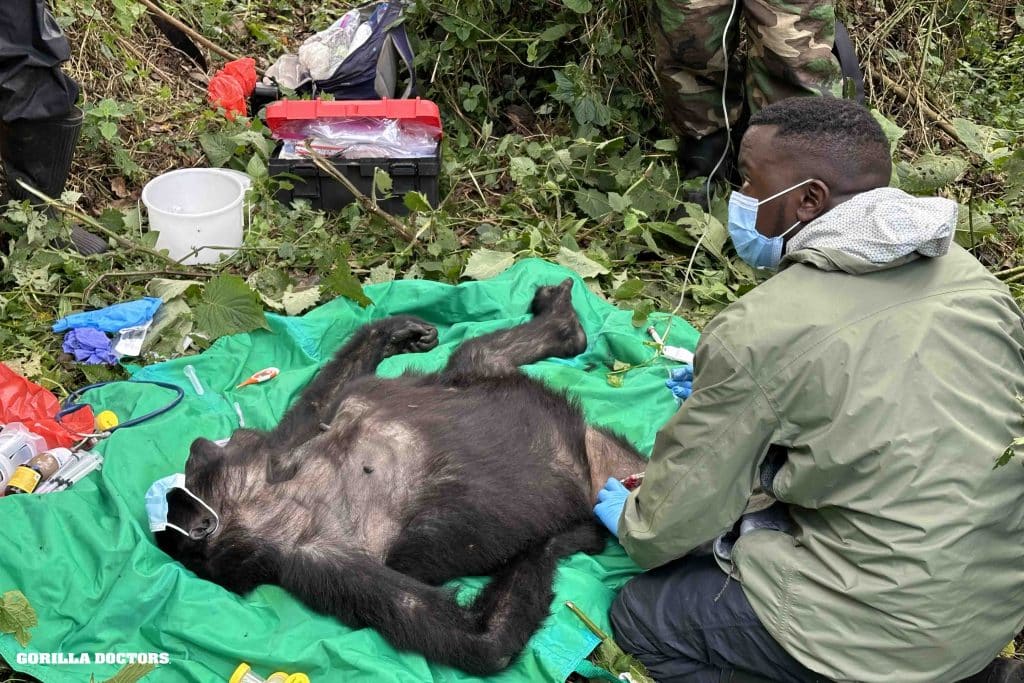 Dr. Nelson treats mountain gorilla in Bwindi Impenetrable National Park, Uganda. © Gorilla Doctors