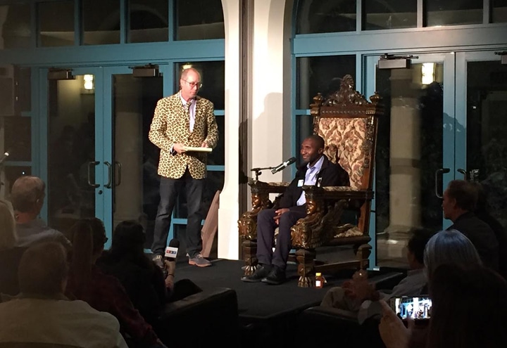 That evening, we arrived at the Santa Barbara Zoo and we were ready to participate in the workshop, starting with Zoo rounds on November 6. That evening, Andre and myself were interviewed about our daily activities with DRC’s eastern gorillas and the next evening there was event unlike anything I had ever experienced, complete with a comedy team! Many people were invited to the Zoo to enjoy the event and Andre and I were among the actors. A King’s chair was placed in the middle of the conference room and I was the first to jump in it. The moderator of the Ceremony, the Zoo’s marketing director, posed the question “Who inspired you to become a veterinarian?” I said that my father was a farmer and raised turkeys, chickens and goats and the comedians created a song about my story. Together we started singing and dancing about what my father used to say to us to take care of the turkeys and goats.