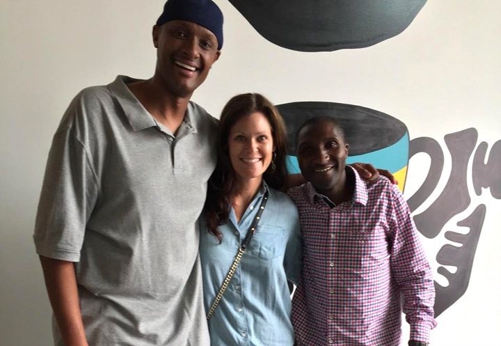 Gorilla Doctors Board Member Jack Karuletwa, his wife Jennifer and Dr. Eddy at Silverback Coffee Cafe in LA.