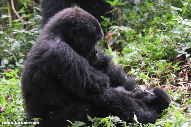 Monitoring the next day found both gorillas showing signs of recovery although Ntarungu still had significant nasal discharge. Fortunately, we observed him breastfeeding, so it did not seem to impact his ability to feed.