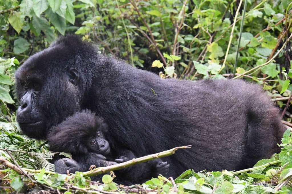 Teta, adult female mountain gorilla and her infant, Pablo group, March 31, 2026. © Gorilla Doctors