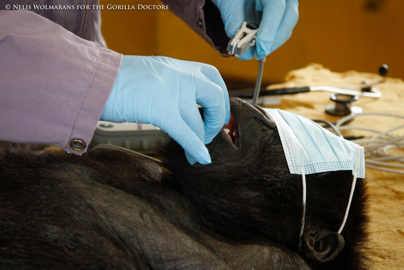 In January 2012, Ihirwe fell from a tree in her enclosure and nearly knocked out her two front teeth. As always, Gorilla Doctors was there to care for her and provide medical treatment. Drs. Dawn and Noel drove to Kinigi to assess Ihirwe’s condition and administered antibiotics and pain medications. Fortunately, the two teeth in question were both baby teeth and fell out in their own time. For more about Ihirwe’s dental injury, click here.