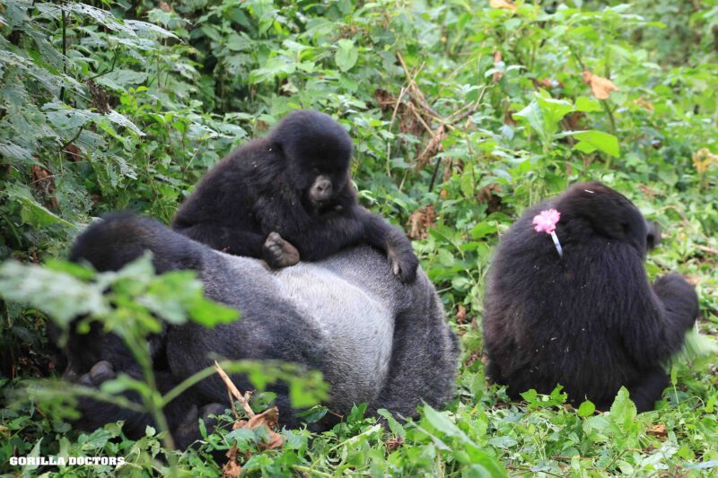 The other gorillas tried to remain close to Fazili but the ranger protection team managed to gently and strategically create a barrier so we could do our work.