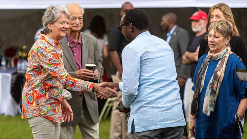 Anne and Roger Powell welcome the Vice Mayor of Musanze, March 17, 2022, to the formal opening of Gorilla Doctors permanent regional HQ in Rwanda.