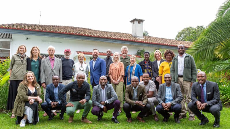 Gorilla Doctors (past and present) in attendance at the formal opening of the regional HQ in Musanze, March 17, 2022. From back left: Amy Bond, Kirsten Gilardi, Roger Powell, Mike Cranfield, Billie Grieb, Brian Huseman, Tony Mudakikwa, Jan Ramer, Ged Caddick, Deborah Dunham, Elizabeth Nyirakaragire, Melinda Goodman Kemp, Valerie Akuredusenge, Benard Ssebide; From bottom left: Donna Platt, Gaspard Nzayisenga, Olivier Nsengimana, Methode Bahizi, Jean Bosco ‘Noel’ Noheri, Adrien Emile Ntwari, Eddy Kambale Syaluha, Julius Nziza.